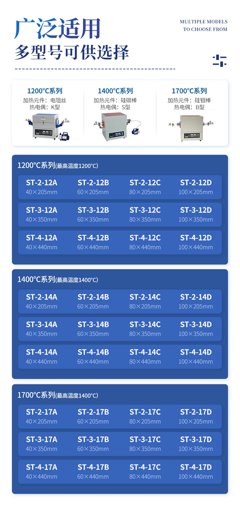 4. 采用完善技術(shù),有單管、雙管等多管,臥式、可開啟式、立式、單溫區(qū)、雙溫區(qū)、三溫區(qū)、四溫區(qū)、五溫區(qū)等多種管式爐型;可選擇配置耐熱鋼、高純石英玻璃、剛玉陶瓷等材料爐管,均溫區(qū)長,操作簡便,密封可靠,綜合性能指標較高。